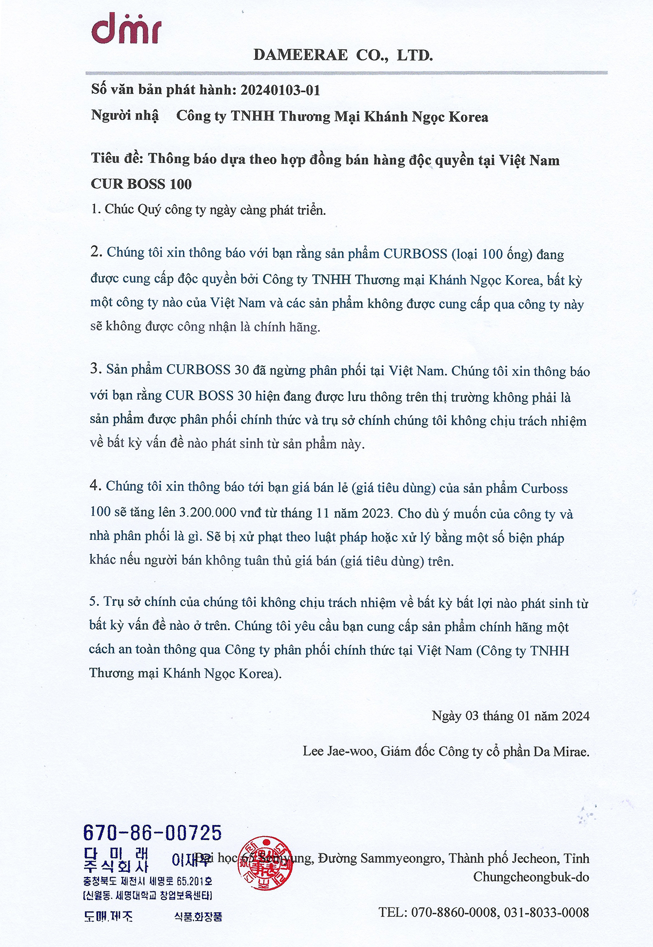 100 units of CurbOSS Vietnam (exclusive sales agreement)